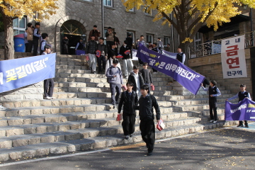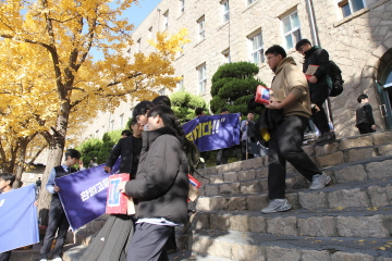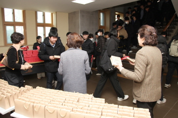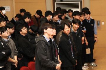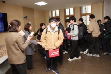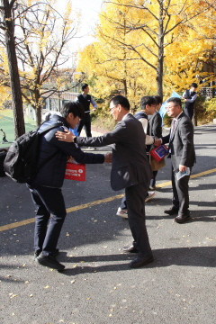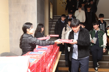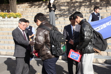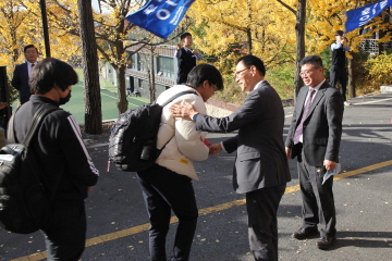 교장선생님, 교감선생님, 학부모 대표께서 직접 대표학생들에게 수능 응원 선물을 전달해주셨고, 응원가 제창 및 후배들의 배웅으로 결의식을 마쳤습니다.